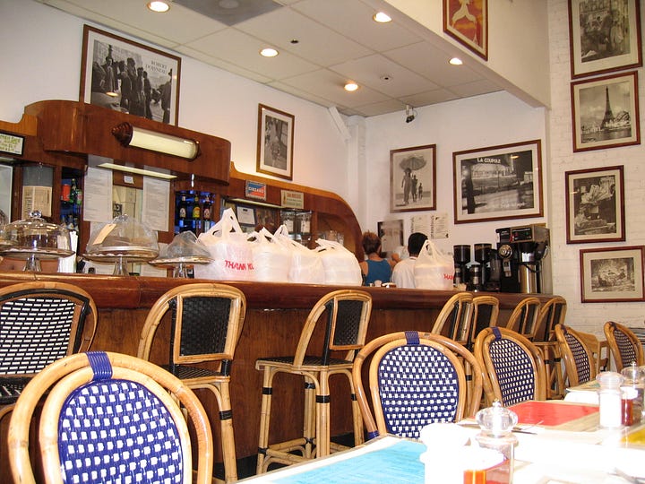 When I moved into the city and lived in the Marina, my writing place was Rose’s Cafe at the corner of Union and Steiner. When my husband and I moved to Los Angeles, I was lost until I discovered Cafe Midi on La Brea. I did not live near Cafe Midi. We lived in Los Feliz (Griffith Park area). However, immediately upon entering, I knew I was home. Cafe Midi was tucked in the back of Maison Midi, an incredible housewares store. The food was amazing. The chef, Edouard Moyal, originally from Morocco, brought a contemporary French/American flair to the extensive menu. They opened at 10 AM when the housewares store opened, and I was usually the first to arrive.
