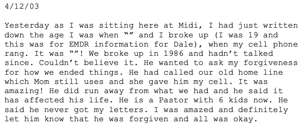 This is all I wrote about this quite incredible life event. What are the chances that when I am writing someone’s name, they call my cell phone, and what are the chances of this timing after 17 years of not being in touch? Four months later, this happened: